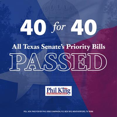 We accomplished a great deal, and that is due in part to a very strong relationship between Lt. Governor Dan Patrick and House Speaker Dustin Burrows. With both chambers working on shared common goals, we were able to accomplish almost all of our major objectives. Were some things left undone? Of course. I’ve never served in a legislative session where I got everything I wanted. But I am very proud of some of our key, substantive wins: