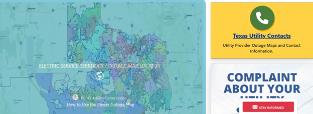 From the above link, if you need to report an outage, click on the “Texas Utility Contacts” in the yellow box as shown in the picture below. When you call, if possible, you need to have your ESI ID number available. You can find that number on your most recent electric bill.
